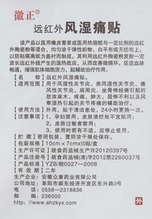 【名稱】:遠(yuǎn)紅外風(fēng)濕痛貼